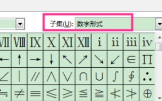 2、方法一:在弹出的对话框中找到”子集“,点右侧的三角,在下拉菜单中选择”数字形式“,左侧就出现一排罗马数字了,选择需要的罗马数字插入即可。