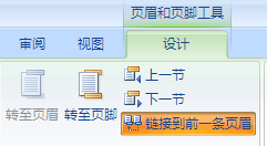 2、在目录后面的页脚处双击,进入页脚编辑状态,单击前一条页眉按钮,断开与前节的链接。