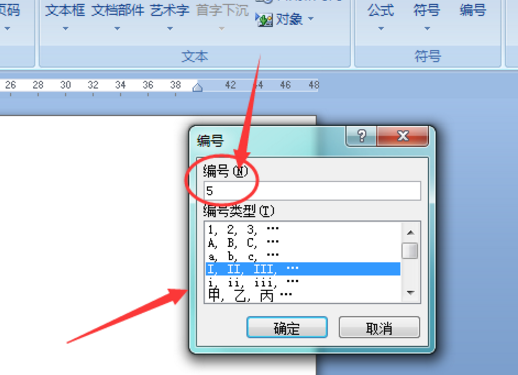 4、在小框里就可以看到有罗马数字的类型,在上面编号里输入你要的数字。