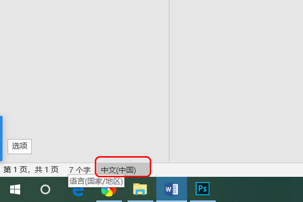 1.打开word文件,点击左下角的“中文(中国)”,如下图所示;
