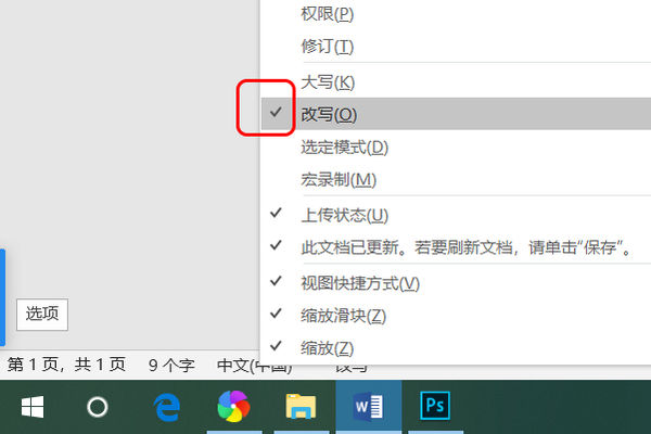 3.看到“改写”前面出现了勾,表示会在下方显示这个功能键,如下图所示;