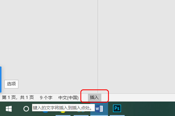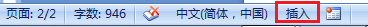 5.点击一下“改写”,就会切换为“插入”,如下图所示,即键入的文字将插入到插入点处,而不是改写后面的文字。