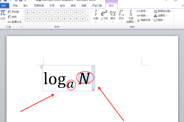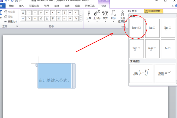 3、在公式方框中分别输入对数的底数和真数即可,放回主文档,发现已成功在WORD文档输入对数函数。