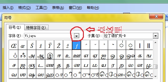 首先,选择文档里的 “f” ,在“插入”菜单下选择“符号”,按下图即可找出“翘尾巴的f” 。