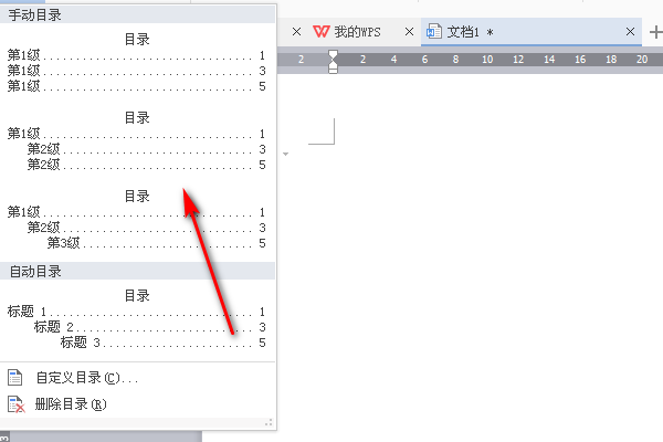 4、点击目录之后下面会出现目录的各种样式,找到需要的一款样式并点击它。