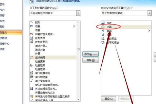 5、我们点击计算,把它添加到隔壁的自定义快速访问工具栏,然后确定。