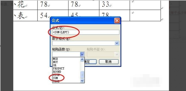 注意:在Word中,只能对左边的或者上边的数据进行计算。上面的(LEFT)表示左边的数据,上面的(ABOVE)表示上边的数据。