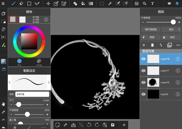 CSP也有不少地方类似Photoshop,它同样支持 .psd 文件格局,而且也提供了一定程度的滤镜和调整图层用于后期处理。