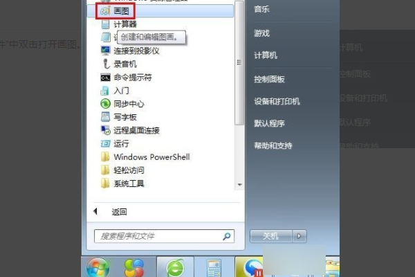 1、首先我们打开电脑桌面,在电脑右下角“开始”选项中选择“附件”选项中双击打开画图。