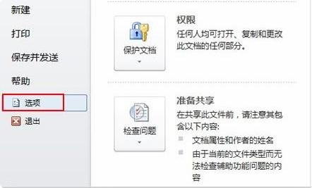 3、点击“选项”(其他版本可以直接打开word选项);