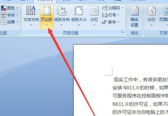 2、选择页边距命令。