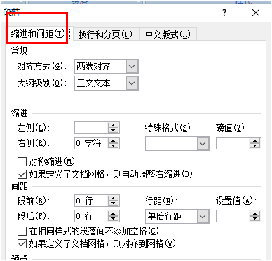 2)弹出“段落”选项卡---选择“缩进和间距”