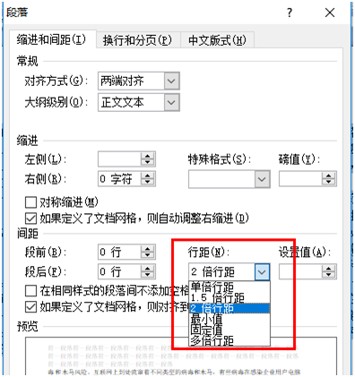 3.选择行距尺寸,如“2倍行距”