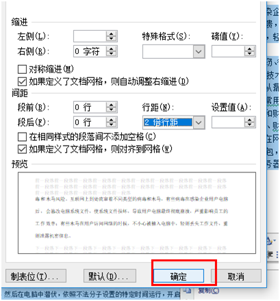 4.确定需要的行距后,点击“确定”按钮。