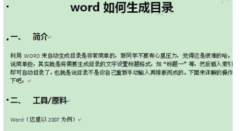 word的目录制作一般经过2个步骤:1、先设置word内容的标题:单击进入大纲视图→设置一级标题、二级标题,只需将光标点到标题行(每个标题均分别单击),然后提升标题,降级标题,逐个设置好了。再生成目录。 弄好了,前换到页面视图 。如果有的标题的字体、字号、行距不符合要求,最好切换到大纲视图选择显示级别到最低标题级别,然后直接看标题修改即可,这样最快捷。2、然后插入引用→索引和目录→目录,选择一种格式。剩下的就没有问题了。