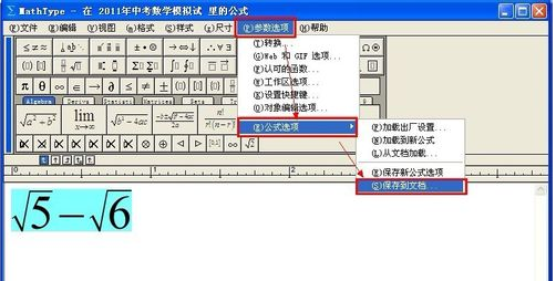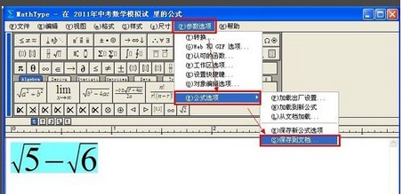 4依次单击“参数选项,公式选项,保存到文档”: