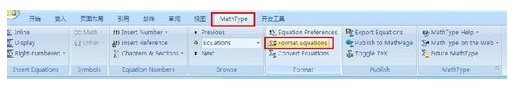 单击公式编辑窗口右上角的X,退出公式编辑状态。单击“MathType”选项卡,然后单击“Format Equations”按钮: