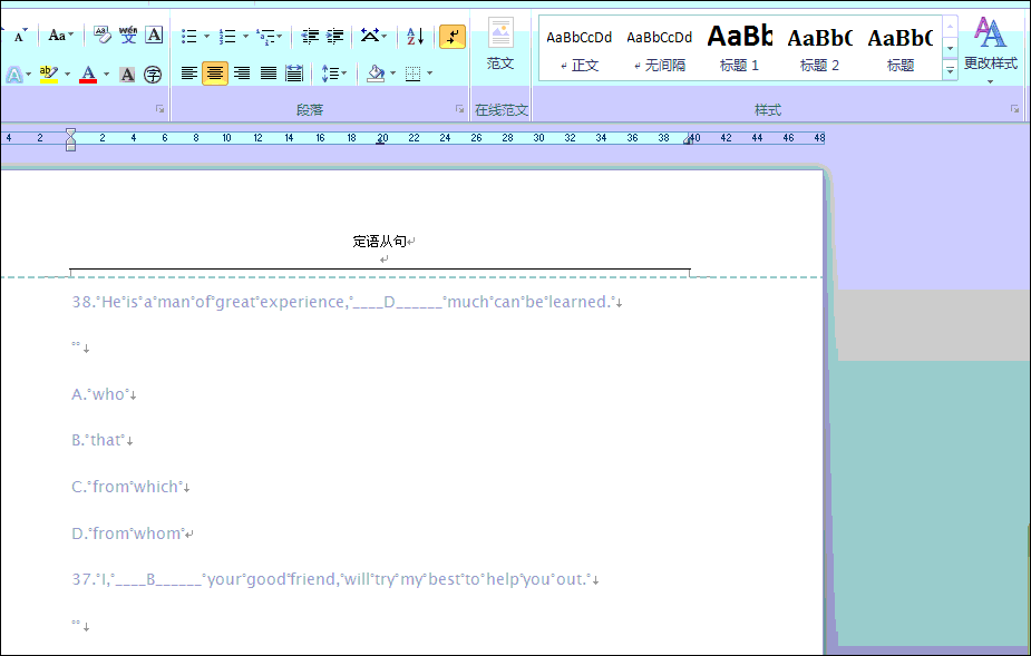 步骤一:打开word界面,单击“格式”菜单下的“样式和格式”选项,打开“样式和格式”任务窗口。如下图: