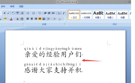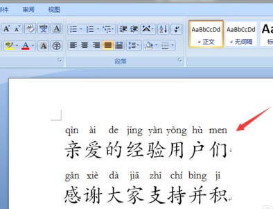 5.然后就可以看见给word文档中的文字添加好读音了
