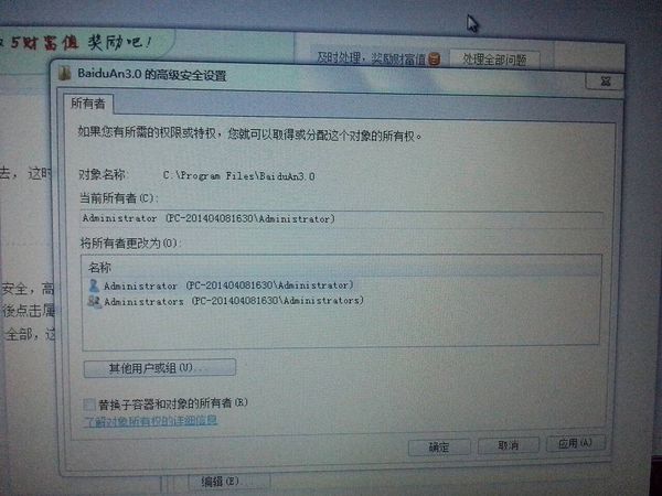 右键打开文件的位置,找到文件夹,右键文件夹,属性,安全,高级,所有者,编辑,把将所有者更改为选择登陆系统管理员用户,确定应用,最後点击属性,安全,编辑,在组和用户名选择登陆系统管理员用户administrators下栏选择全部,这样你就有了管理员权限可以删除了,记得清理注册表,同时全盤扫描。更多