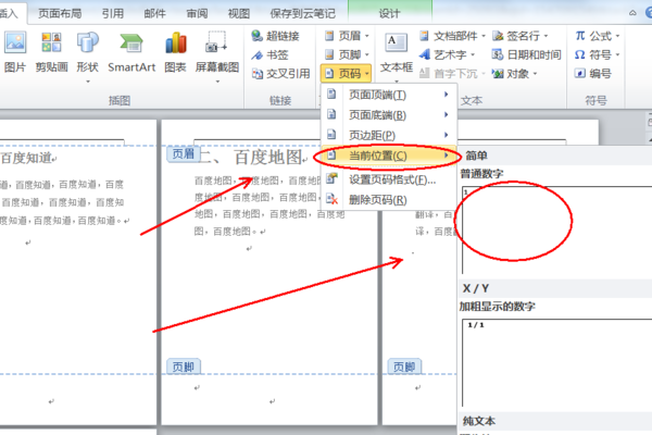 2、在下拉选项中点击“当前位置”,然后选择一个页码样式插入即可。