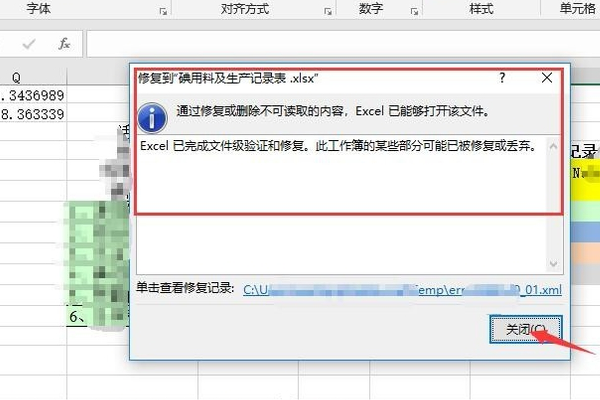 6、等下文件就会被修复完成,点击关闭,文件就被修复好了。