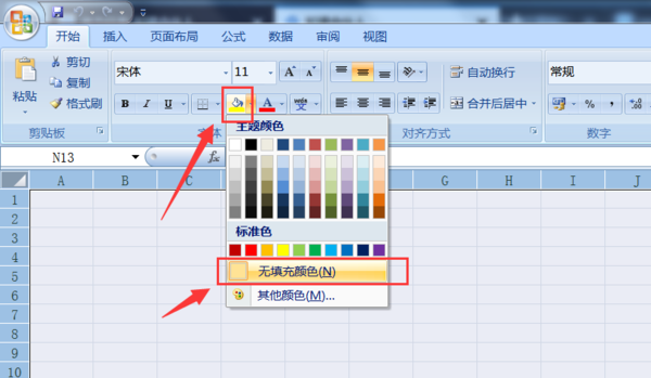 2、在窗口左上方的工具栏点击填充按钮,然后在下拉框中选择“无填充颜色”清空表格的填充。