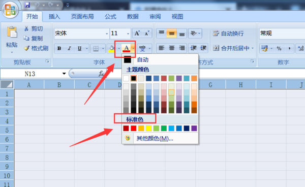 3、在全选的状态下找到字体颜色填充的按钮,在下拉框中选择“标准色”把所有字体颜色设置为黑色,这样就可以保证输入的内容都能显示。