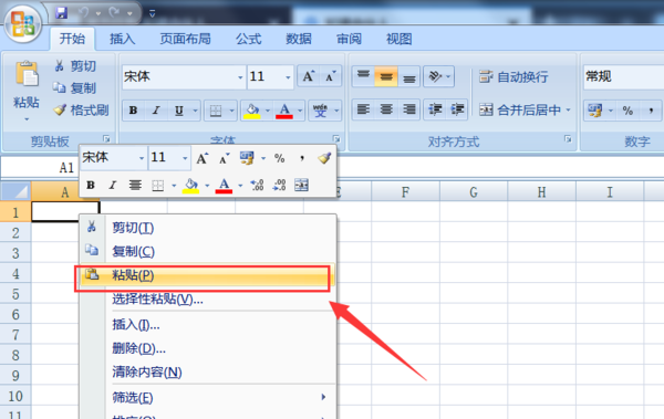 ③把光标移动到表格第一个单元格,然后单击右键选择“粘贴”。