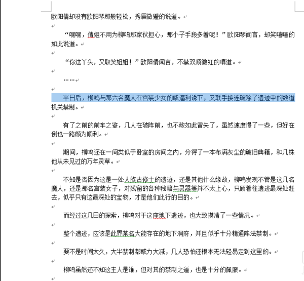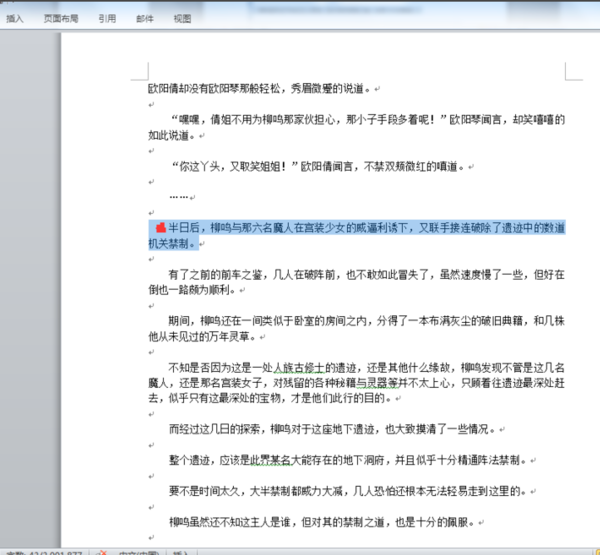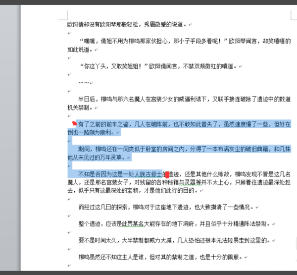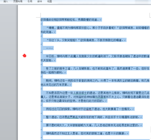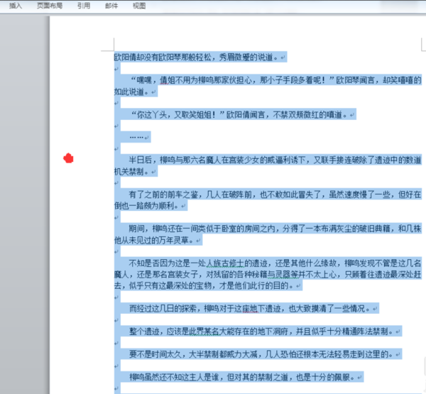 9、即可选中两者之间所有文字