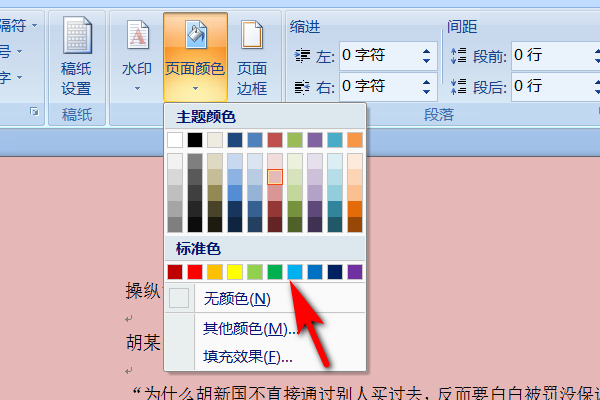 3.然后在页面背景一栏中找到页面颜色,并点击下面的三角形。