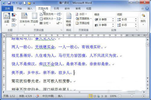 1、随便打开一个word文档,在里面放上一篇余秋雨先生的文章