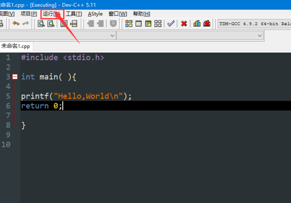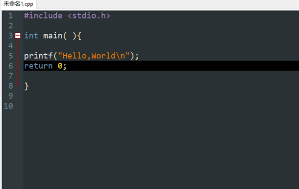 3.输入源代码,下面给出最简单的Hello,world源代码: