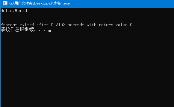 5.点击任意键返回源代码编辑界面可以继续进行开发,接下来就是C语言语法的学习了。