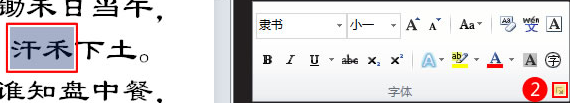 打开Word2010,选中要隐藏的文字,切换到“开始”选项卡,然后单击“字体”组右下角的对话框启动器。