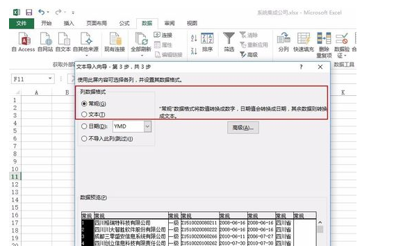 6、列数据格式选择”常规“,”常规“选项更为智能。完成设定后,点击完成。