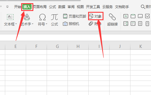 2..在插入页面中找到上方对象选项,点击该选项进入对象选择页面,如下图所示。
