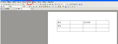 1、打开文字文档以后,先做好表格,接着找到文档中工具栏的“工具”按钮。