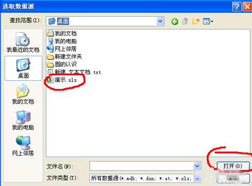 4、接着就会出现一个选择框,选择好需要导入的数据源excel文件,点击确定。