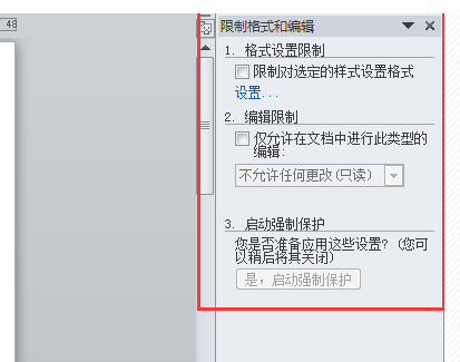 3.在word文档的右边会弹出一个,显示的限制方式分为格式限制设置、编辑限制两种,勾选编辑限制。