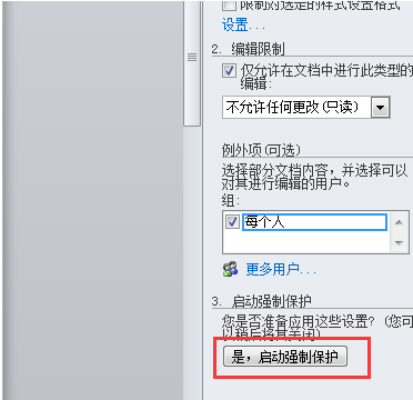 4.这样下来,又分为对各类文本的限制,包括修订、批注、填写窗体和不允许任何修改,选择不允许任何修改。下面就是针对不同的人员使用进行限制,直接选择对每人即可。