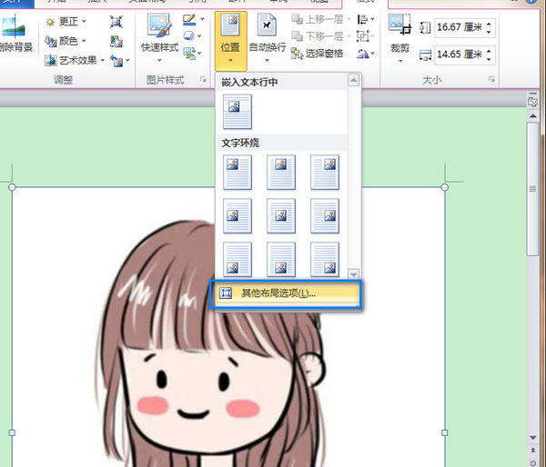 3、点击“位置”下的倒三角,选择“其它布局选项”。