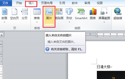 2、插入图片—选择图片—这样插入进来的图片实际上是属于页眉上的