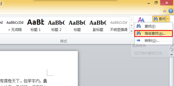 4、在下拉目录中,选择“高级查找”,如图所示。