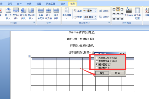 word表格里面多一行怎么删除