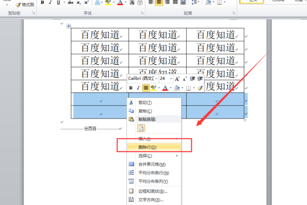 怎么删除word中的表格多余的行