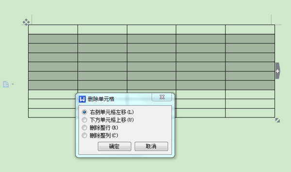 4.选择删除单元格的方向,选择不影响其他表格或文字的方式,点击确定,这样选中的这行单元格被删除。