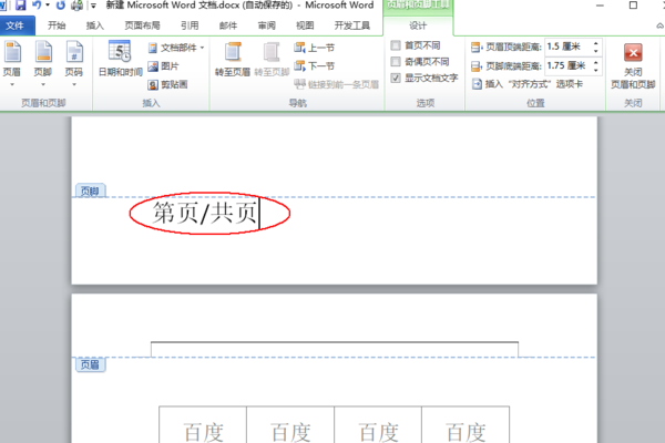 word2010里怎么设置页码为第几页共几页