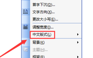 4、点击格式菜单在其子级菜单里找到中文版式选项。