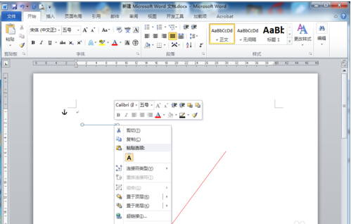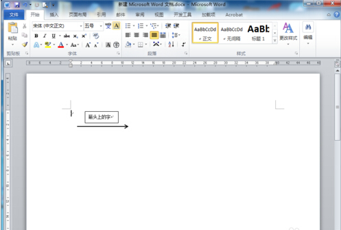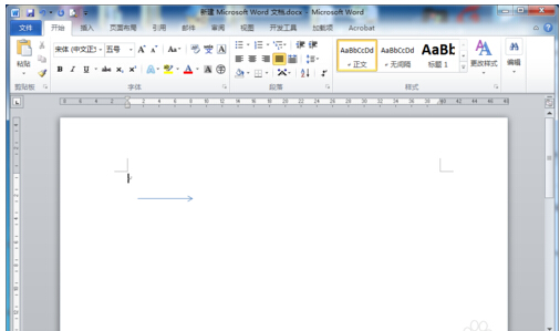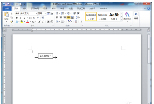 2、当鼠标箭头变成黑色十字时在word空白处拖动画一个箭头。
